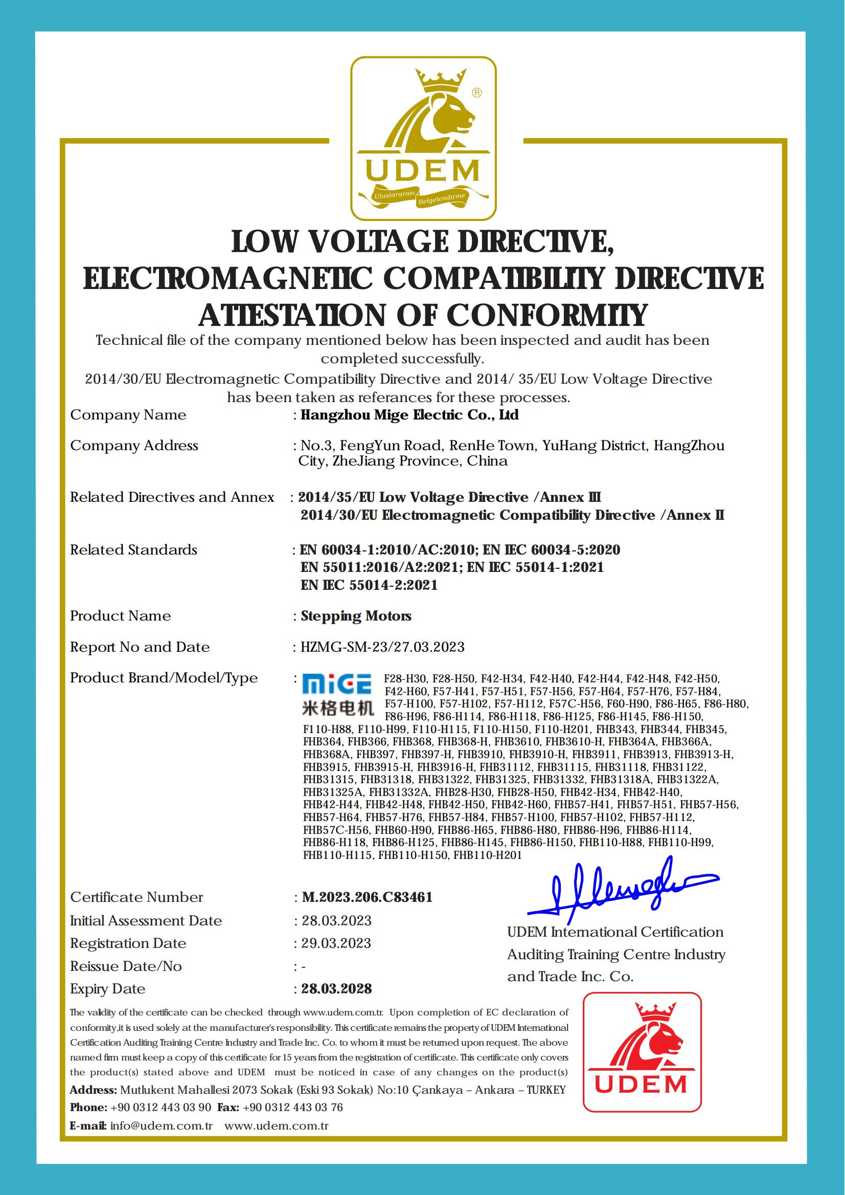 • 步進(jìn)電機(jī)CE認(rèn)證證書